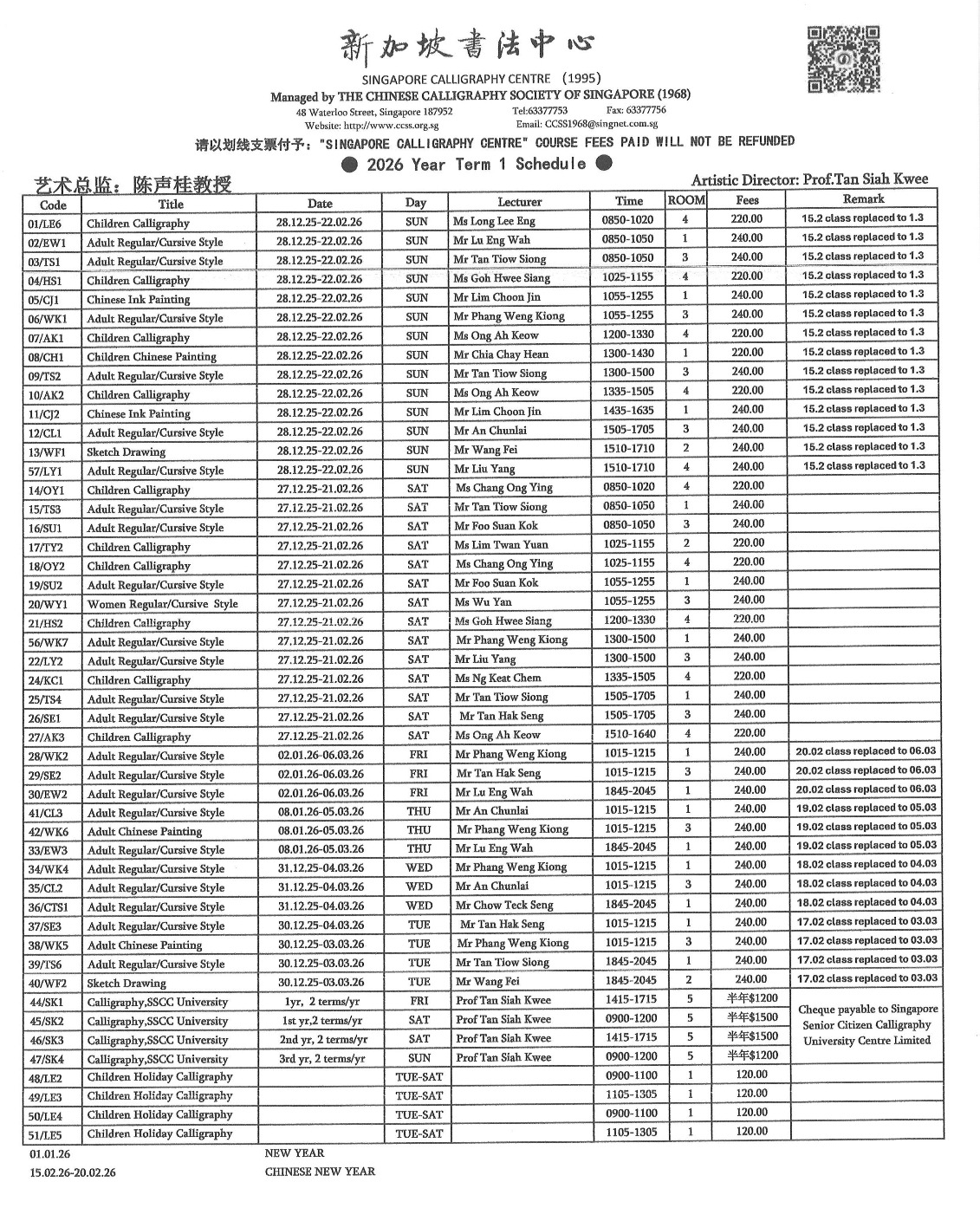 At the moment, the Centre has close to 50 classes with some 550 learners. In the beginning of 2005, the Singapore Senior Citizen Calligraphy University Centre set its root at the Centre and presently, has 4 classeswith around 70 students.